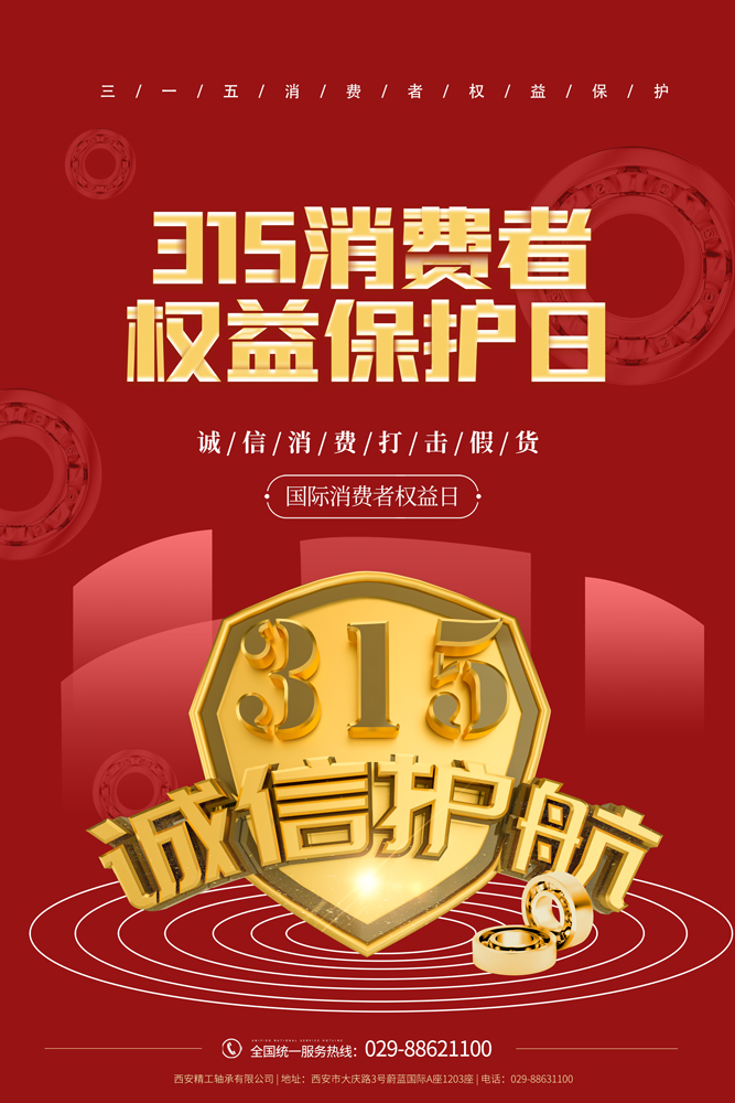 未來,西安精工軸承有限公司承諾會一如既往的誠信經營,把每一天當做“315”,以質量服務為百年精工賦能,守護好客戶的每一份權益!